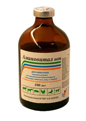 Биологические свойства Аминовитал ВЕТ обусловлены наличием входящих компонентов в оптимальном сочетании. Витамины, входящие в состав кормовой добавки, являются катализаторами обменных процессов. L-триптофан - структурная единица тканевых белков, ферментов, пептидных гормонов и других биологически активных соединений. Препарат оказывает на организм животных комплексное общеукрепляющее антистрессовое действие, а также способствует повышению конверсии кормов и увеличению продуктивности. Водорастворимая форма препарата позволяет витаминам быстро всасываться и многократно увеличивает их биодоступность по сравнению масляными и сухими формами.
