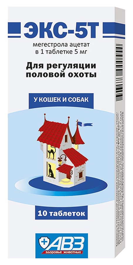 Препарат ЭКС-5Т применяют для регуляции половой охоты у кошек и собак (прерывания течки у самок, ослабления половой активности у самцов).