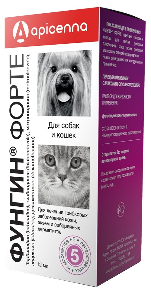 Инструкция по применению ФУНГИН® ФОРТЕ для лечения грибковых заболеваний кожи, экзем грибковой этиологии и себорейных дерматитов у собак и кошек