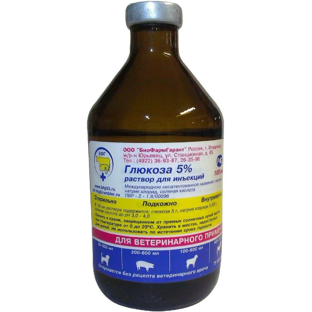 Изотонический (5 %) раствор глюкозы вводят подкожно и внутривенно. Объем дозы и сроки применения зависят от массы животного и течения болезни.