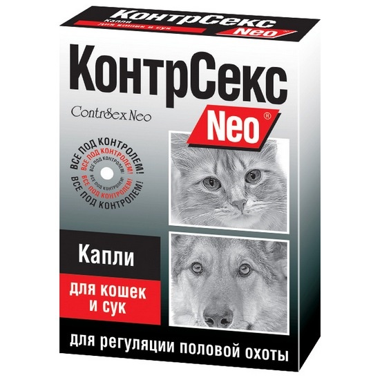 - Препараты КонтрСекс Neo предназначены для решения проблем поведения во время половой охоты, а также для предотвращения нежелательной беременности у кошек и собак. Обладают высокой эффективностью и безопасны для здоровья животных. Благодаря позиционированию торговой марки КонтрСекс Neo в низком ценовом сегменте и её известности у конечных покупателей обеспечивается высокая оборачиваемость данного товара у организаций оптовой и розничной торговли. Эффективно устраняют проблемы, связанные с половой активностью у кошек и собак, в заявленный курс применения: Угнетают половое возбуждение; Регулируют период наступления полового возбуждения; Предотвращают нежелательную беременность; Регулируют половую охоту и связанное с ней нежелательное поведение у котов и кобелей (агрессивность, мечение территории, повышенную возбудимость и прочее). Препараты КонтрСекс Neo изготавливаются с использованием синтетических гормонов нового поколения - аналогов эстрогена и гестагена. Это позволяет эффективно решать все проблемы периода половой охоты у кошек и собак. Капли - самая удобная форма препарата КонтрСекс Neo для применения кошкам и собакам. Также данный товар выпускается в традиционной таблетированной форме.
