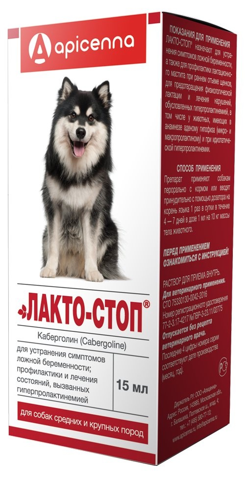 ЛАКТО-СТОП® - раствор для орального применения, предназначен для устранения симптомов ложной беременности; профилактики и лечения состояний, вызванных гиперпролактинемией у собак и кошек