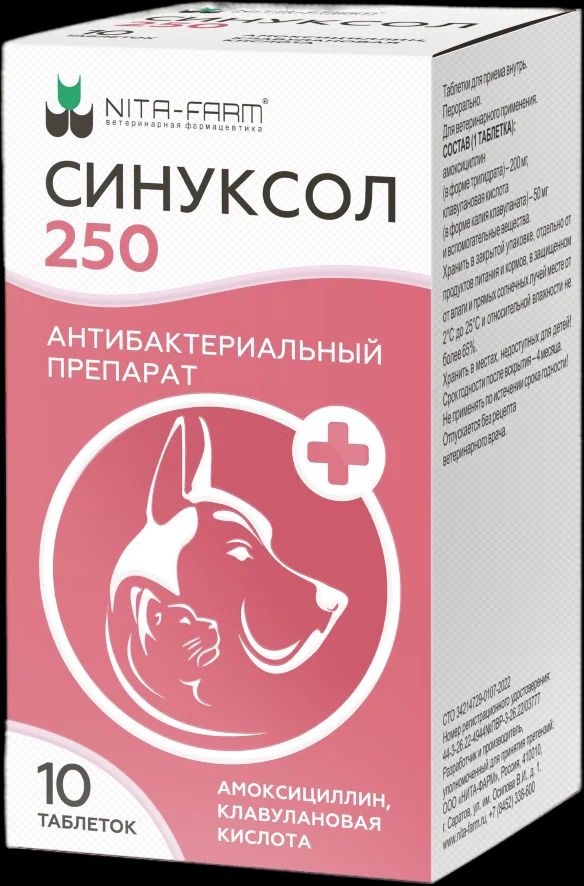 Синуксол-НИТА таблетки д/животных от 5 до 20 кг, 250 мг №10