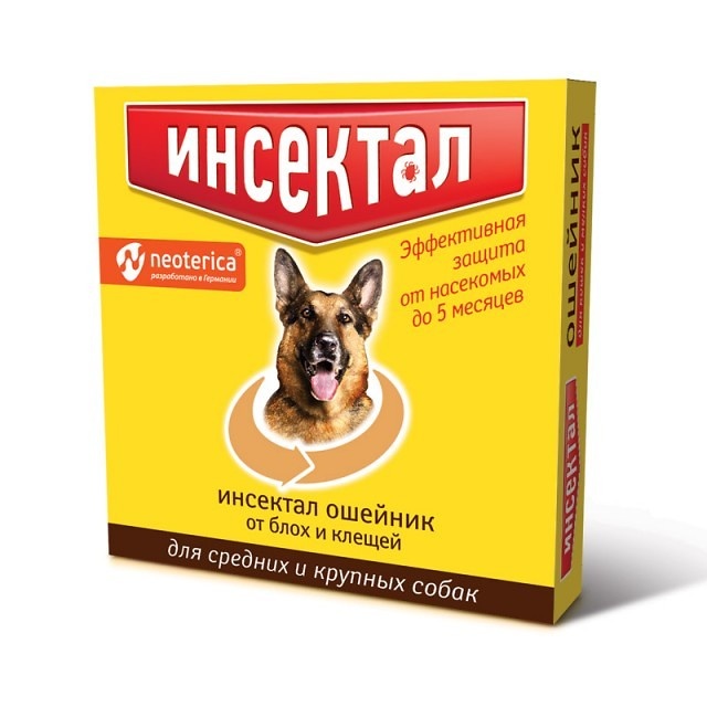 Инсектал ошейник применяют собакам и кошкам для уничтожения блох, вшей, власоедов, иксодовых клещей и предотвращения их нападения на животных. Постоянное ношение ошейника обеспечивает защиту собак и кошек от насекомых в течение 5 месяцев и иксодовых клещей в течение 4 месяцев.